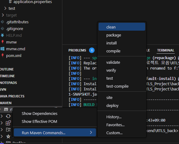VSCode 에서 Maven jar 빌드하기 1. clean 2. install 3. target 폴더에 jar 파일이 있는 걸 확인 할 수 있습니다. 4. 끝 카테고리 없음 2025.01.14